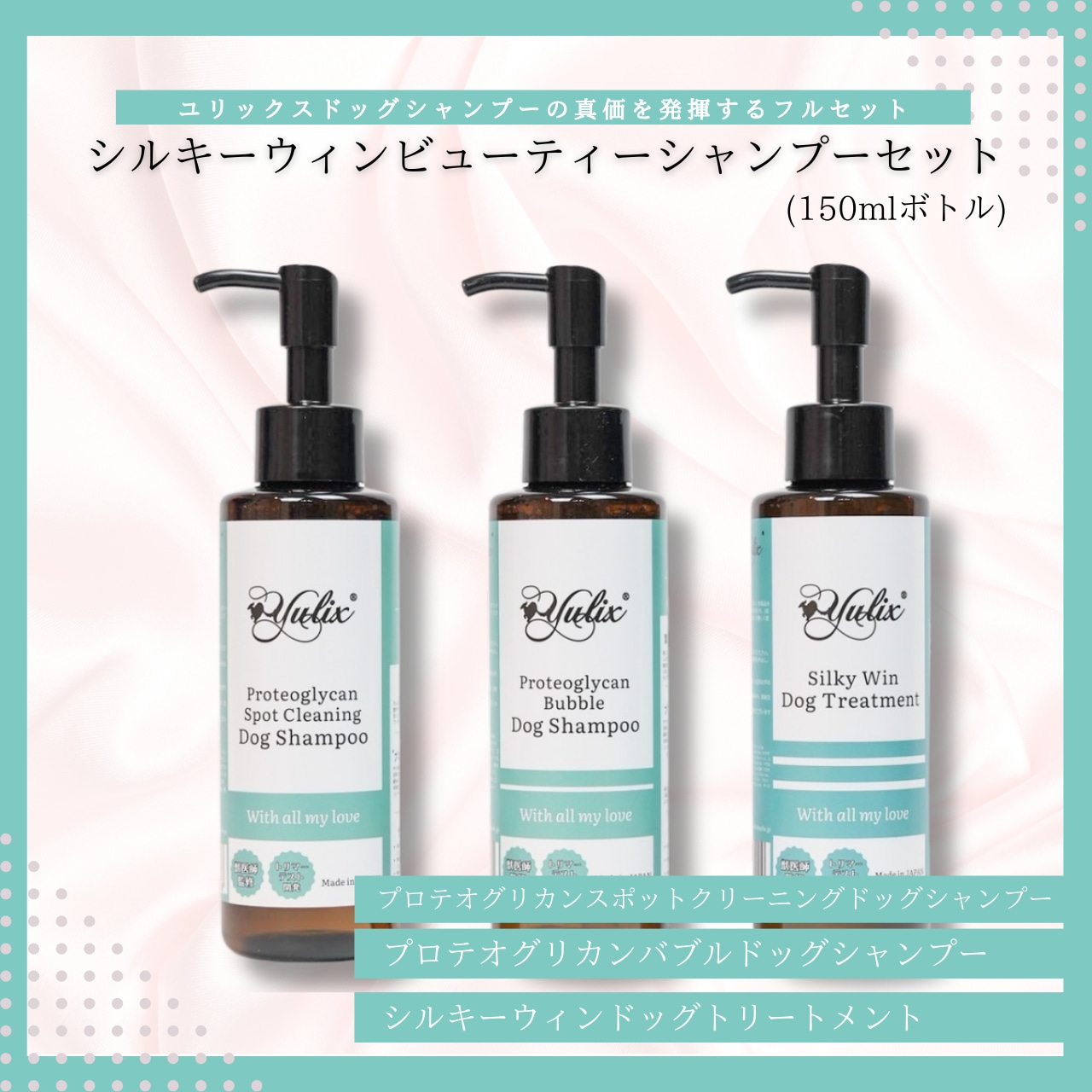 ・spot cleaning 狗狗洗髮精(150ml) ・bubble 狗狗洗髮精(150ml) ・silky win 護髮素(150ml)